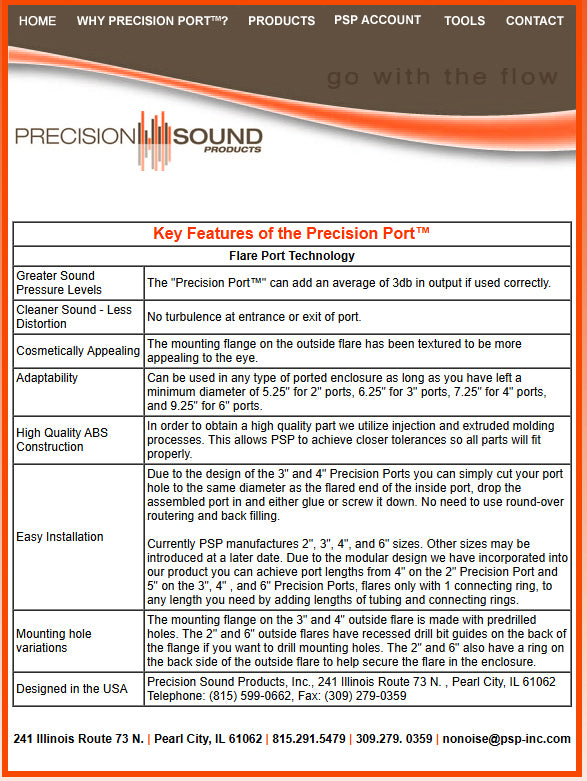 The unique flared-end construction of the Precision Port™ system enables it to outperform any standard port tube on the market. Conventional tubes suffer from nasty turbulence at the entrance and exit of the port, producing unwanted noise and poor sound quality.